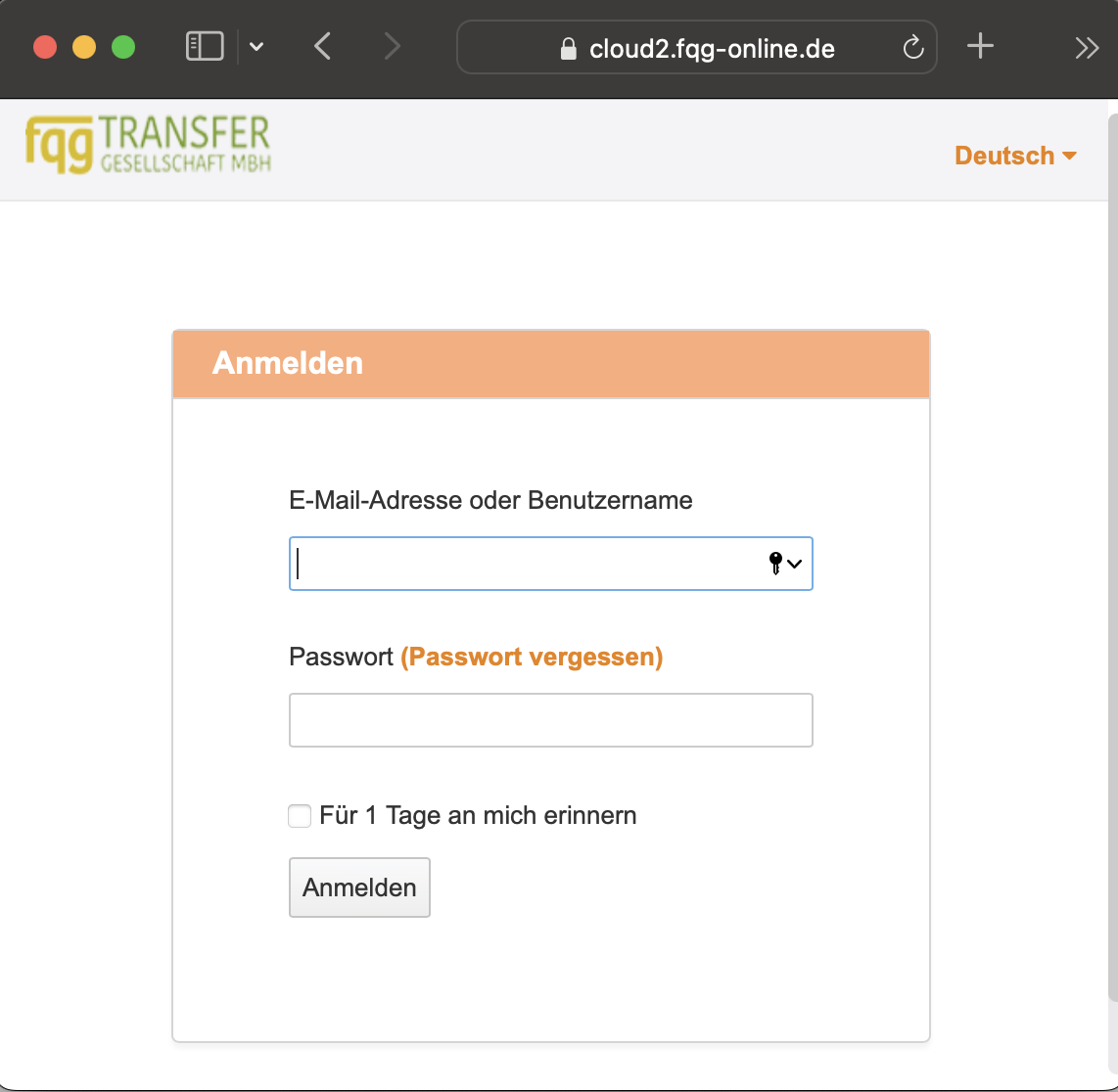 Um auf die Cloud zu gelangen benötigen Sie nunmehr nur noch den Link https://cloud2.fqg-online.de. Benutzernamen und zugehörige Kennwörter bleiben gleich!